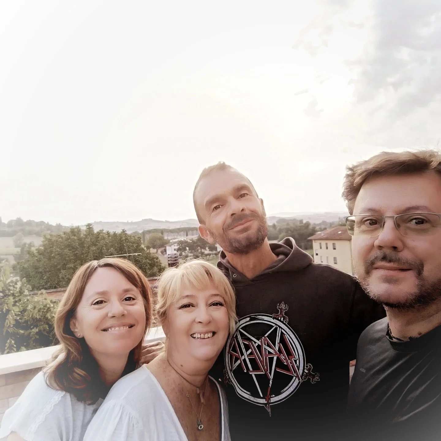 Foto di gruppo sulla nostra terrazza con l'amica Chiara Limelli, giornalista di Radio Italia