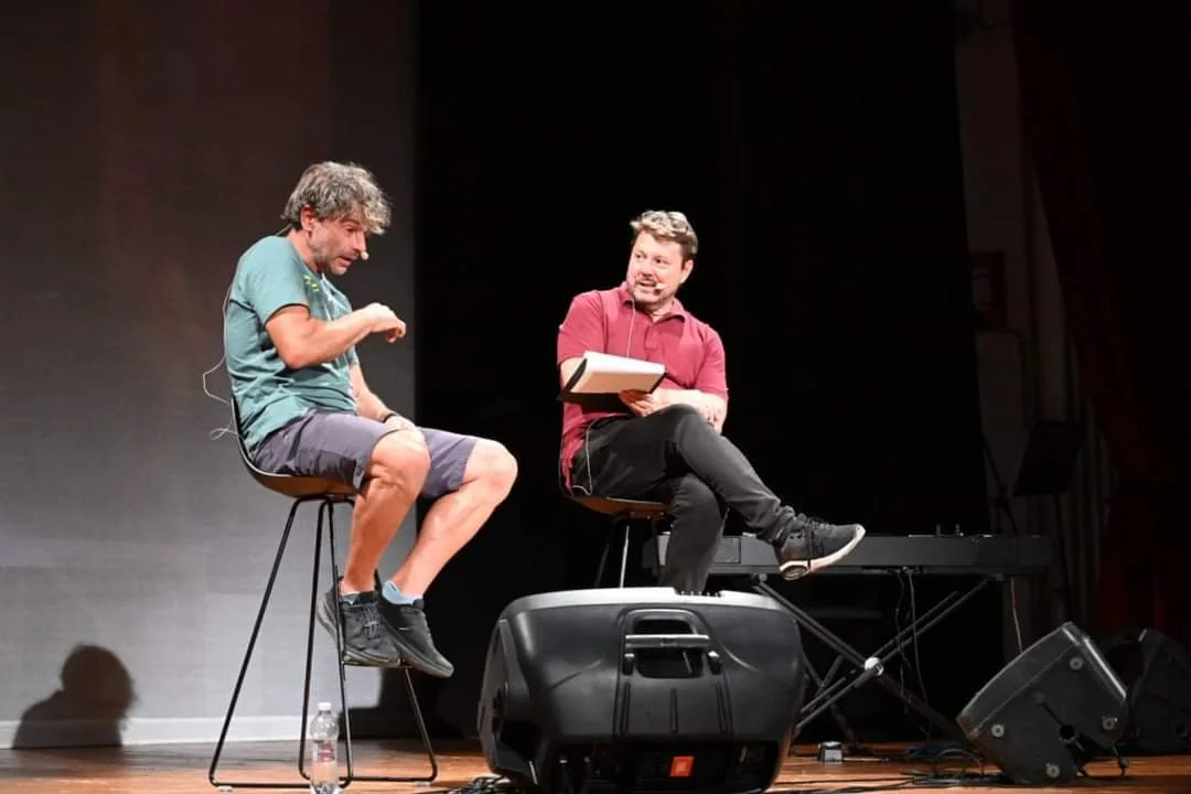 Un altro ospite, questa volta dal “nostro” Trentino, è stato l’esploratore Yanez Borella, reduce da un viaggio in bicicletta fino in Pakistan, sulle rotte dell’acqua. Io avevo conosciuto Yanez al Parco Naturale Adamello Brenta, che sostiene alcune sue spedizioni. È stato bello averlo anche in Umbria e intervistarlo sul palco del teatro Concordia (molti eventi purtroppo sono stati spostati da Spina al teatro di Marsciano allì’ultimo momento per via delle infauste previsioni meteo).